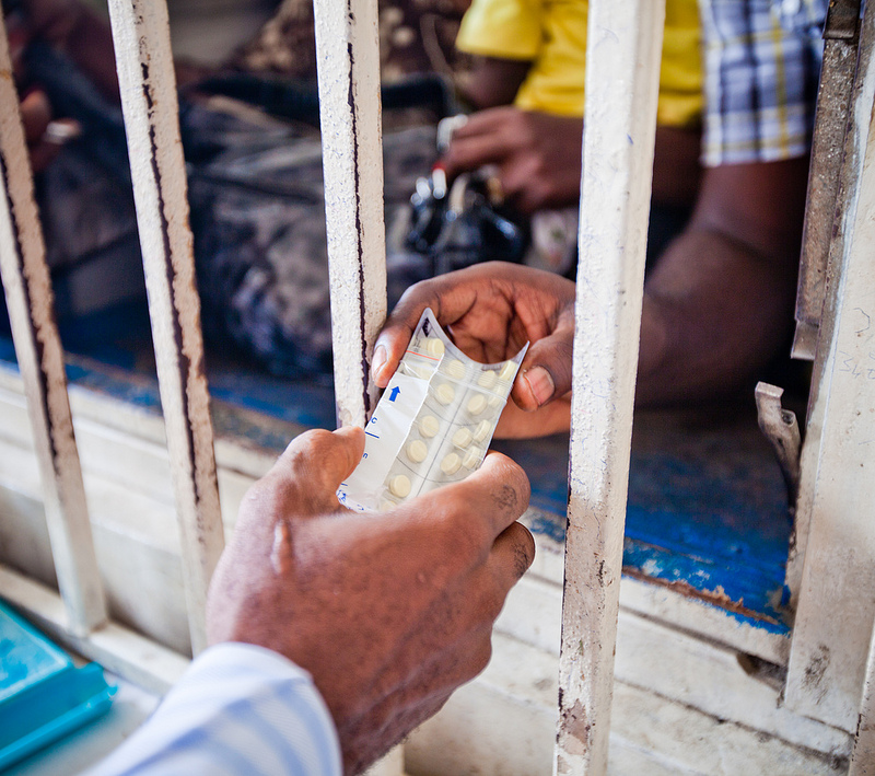 Man receiving malaria medicine. Benoit Matsha-Carpentier/IFRC